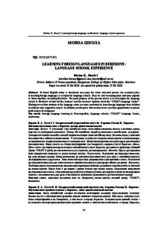 Bárány, K. and Huszti, I. (2020) Learning Foreign Languages in Berehove: Language School Experience. КИЇВСЬКИЙ НАЦІОНАЛЬНИЙ ЛІНҐВІСТИЧНИЙ УНІВЕРСИТЕТ. ВІСНИК. СЕРІЯ: ПЕДАГОГІКА ТА ПСИХОЛОГІЯ, 33. pp. 75-87. ISSN 2412-9283