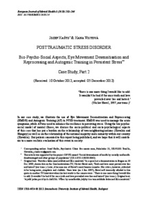 Hašto, Jozef and Vojtová, Hana (2013) Posttraumatic Stress Disorder: Bio-Psycho-Social Aspects, Eye Movement Desensitisation and Reprocessing and Autogenic Training in Persistent Stress: Case Study, Part 2. EUROPEAN JOURNAL OF MENTAL HEALTH, 8 (2). pp. 232-264. ISSN 1788-4934 (print); 1788-7119 (online)