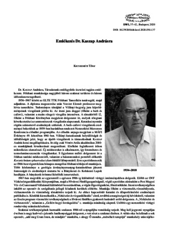 Kecskeméti, Tibor (2020) Emlékezés Dr. Kaszap Andrásra. FÖLDTANI KÖZLÖNY, 150 (1). pp. 37-41. ISSN 0015-542X (nyomtatott); 2559-902X (online)