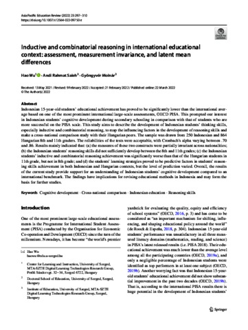 Wu, Hao and Saleh, Andi Rahmat and Molnár, Gyöngyvér (2022) Inductive and combinatorial reasoning in international educational context: assessment, measurement invariance, and latent mean differences. ASIA PACIFIC EDUCATION REVIEW, 23 (2). pp. 297-310. ISSN 1598-1037