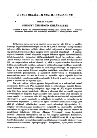 Zsirai, Miklós (1954) Simonyi Zsigmond emlékezete : Előadás a Nyelv- és Irodalomtudományi Osztály 1953. április 20-án — Simonyi Zsigmond születésének 100. évfordulója alkalmából — tartott felolvasó ülésén. A MAGYAR TUDOMÁNYOS AKADÉMIA NYELV- ÉS IRODALOMTUDOMÁNYI OSZTÁLYÁNAK KÖZLEMÉNYEI, 5 (1-4). pp. 465-481.