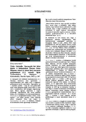Ilon, Gábor (2022) Könyvismertetés - Vörös Gabriella: Szarmaták két folyó között. A kiskunhalasi Thorma János Múzeum római és római kori szarmata gyűjteményei (1–5. század). ARCHEOMETRIAI MŰHELY, 19 (3). pp. 315-317. ISSN 1786-271X