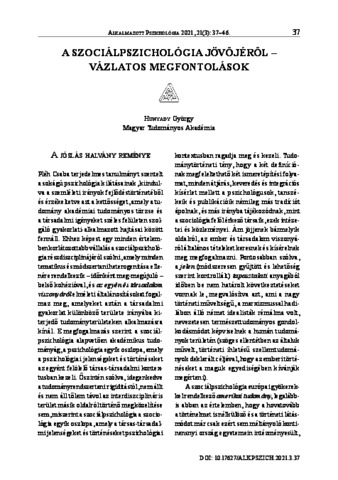 Hunyady, György (2021) Szociálpszichológia jövőjéről - vázlatos megfontolások. ALKALMAZOTT PSZICHOLÓGIA, 21 (3). pp. 37-46. ISSN 1419-872X
