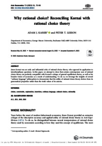 Kaiser, Adam J. and Leeson, Peter T. (2023) Why rational choice? Reconciling Kornai with rational choice theory. ACTA OECONOMICA, 73 (S1). pp. 75-86. ISSN 0001-6373