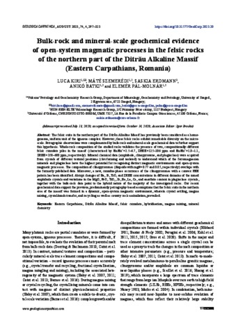 Kiri, Luca and Szemerédi, Máté and Erdmann, Saskia and Batki, Anikó and Pál-Molnár, Elemér (2023) Bulk-rock and mineral-scale geochemical evidence of open-system magmatic processes in the felsic rocks of the northern part of the Ditrău Alkaline Massif (Eastern Carpathians, Romania). GEOLOGICA CARPATHICA, 74 (4). pp. 297-323. ISSN 1335-0552