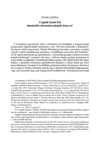 Zvara, Edina (2012) Ceglédi Szabó Pál dunántúli református püspök könyvei. MAGYAR KÖNYVSZEMLE, 128. é (3.). 293-318.. ISSN 0025-0171