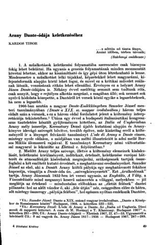 Kardos, Tibor (1968) Arany Dante-ódája keletkezéséhez. FILOLÓGIAI KÖZLÖNY, 14 (1-2). pp. 49-74. ISSN 0015-1785