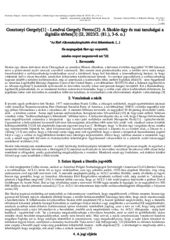 Gosztonyi, Gergely and Lendvai, Gergely Ferenc (2024) A Skokie-ügy és mai tanulságai a digitális térben. INFOKOMMUNIKÁCIÓ ÉS JOG, 20 (2(81)). pp. 3-6. ISSN 1786-0776