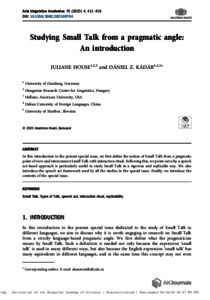 House, Juliane and Kádár, Dániel Z. (2023) Studying Small Talk from a pragmatic angle: An introduction. Acta Linguistica Academica, 70 (4). pp. 411-418. ISSN 2559-8201