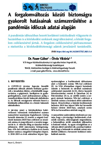 Pauer, Gábor and Ötvös, Viktória (2023) A forgalomváltozás közúti biztonságra gyakorolt hatásainak számszerűsítése a pandémiás időszak adatai alapján. KÖZLEKEDÉSTUDOMÁNYI SZEMLE, 73 (5). pp. 43-50. ISSN 0023-4362
