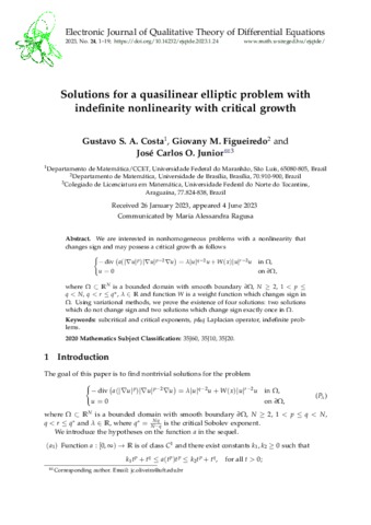 Costa, Gustavo S. A. and Figueiredo, Giovany M. and Junior, José Carlos O. (2023) Solutions for a quasilinear elliptic problem with indefinite nonlinearity with critical growth. ELECTRONIC JOURNAL OF QUALITATIVE THEORY OF DIFFERENTIAL EQUATIONS, 2023 (24). pp. 1-19. ISSN 1417-3875