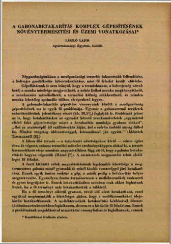 László, Lajos (1963) A gabonabetakarítás komplex gépesítésének növénytermesztési és üzemi vonatkozásai. AGRÁRTUDOMÁNYI KÖZLEMÉNYEK : A MAGYAR TUDOMÁNYOS AKADÉMIA AGRÁRTUDOMÁNYOK OSZTÁLYÁNAK KÖZLEMÉNYEI, 22 (1-2). pp. 27-42. ISSN 0002-1113