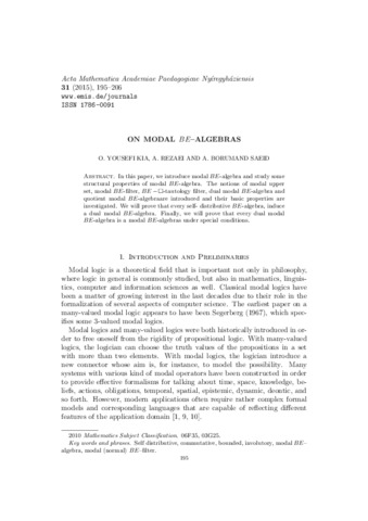 Yousefi Kia, O. and Rezaei, A. and Borumand Saeid, A. (2015) On modal BE-algebras. ACTA MATHEMATICA ACADEMIAE PAEDAGOGICAE NYÍREGYHÁZIENSIS, 31 (2). pp. 195-206. ISSN 0866-0174