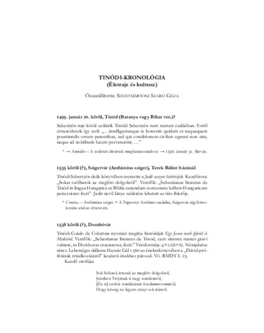 Szentmártoni Szabó, Géza (2008) Tinódi-kronológia : életrajz és kultusz. In: Tinódi Sebestyén és a régi magyar verses epika. Editura Kriterion; Kriterion Kiadó, Kolozsvár, pp. 309-355. ISBN 9789732609118