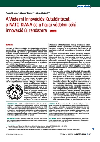 Porkoláb, Imre and Hennel, Sándor and Hegedűs, Ernő (2023) A Védelmi Innovációs Kutatóintézet, a NATO DIANA és a hazai védelmi célú innováció új rendszere 1. rész. HADITECHNIKA, 57 (5). pp. 47-50. ISSN 0230-6891