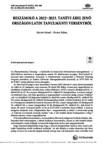 Krupp, József and Rung, Ádám (2023) Beszámoló a 2022–2023. tanévi Ábel Jenő Országos Latin Tanulmányi Versenyről. ANTIK TANULMÁNYOK - STUDIA ANTIQUA, 67 (2). pp. 303-309. ISSN 0003-567X (nyomtatott); 1588-2748 (elektronikus)
