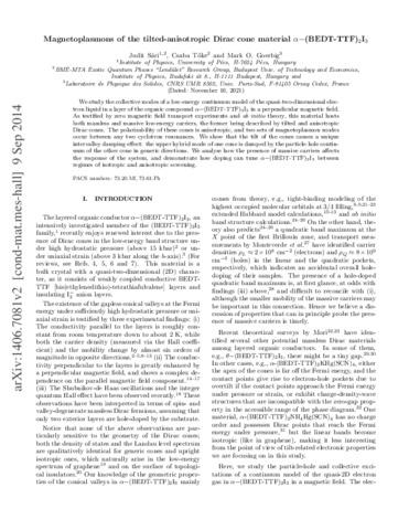 Sári, Judit and Tőke, Csaba and Goerbig, Mark O. (2014) Magnetoplasmons of the tilted anisotropic Dirac cone material alpha-(BEDT-TTF)(2)I-3. PHYSICAL REVIEW B, 90 (15). ISSN 2469-9950