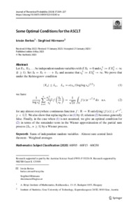 Berkes, István and Siegfried, Hörmann (2024) Some optimal conditions for the ASCLT. JOURNAL OF THEORETICAL PROBABILITY. ISSN 0894-9840