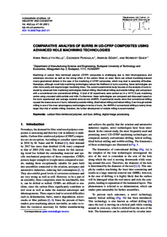 Helle, Anna Nikoletta and Pereszlai, Csongor and Gödri, András and Geier, Norbert (2021) Comparative Analysis of Burrs in UD-CFRP Composites Using Advanced Hole Machining Technologies. HUNGARIAN JOURNAL OF INDUSTRY AND CHEMISTRY, 49 (2). pp. 47-52. ISSN 0133-0276