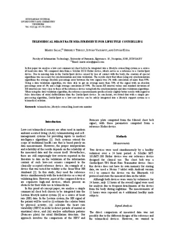 Salai, Mario and Tuboly, Gergely and Vassányi, István and Kósa, István (2014) Telemedical Heart Rate Measurements for Lifestyle Counselling. HUNGARIAN JOURNAL OF INDUSTRY AND CHEMISTRY, 42 (2). pp. 65-70. ISSN 0133-0276