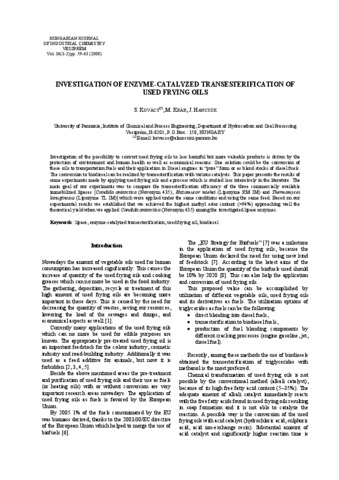 Kovács, S. and Krár, M. and Hancsók, Jenő (2008) Investigation of enzyme-catalyzed transesterification of used frying oils. HUNGARIAN JOURNAL OF INDUSTRY AND CHEMISTRY, 36 (1-2). pp. 59-63. ISSN 0133-0276
