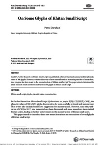 Daruhan, Peng (2023) On Some Glyphs of Khitan Small Script. ACTA ORIENTALIA ACADEMIAE SCIENTIARUM HUNGARICAE, 76 (4). pp. 647-663. ISSN 0001-6446