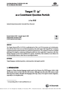 Yue, Ji (2023) Tangut (sic) ja1 as a Constituent Question Particle. ACTA ORIENTALIA ACADEMIAE SCIENTIARUM HUNGARICAE, 76 (4). pp. 631-646. ISSN 0001-6446