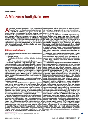 Az Országos Hadigőzös Mészáros a maga korában – az 1800-as évek első felében – forradalmasította a folyami hadviselést a Dunán. A megjelenésével lényegében megszüntette az addig még erősen középkori alapokon nyugvó folyami hadviselési formát, és megnyitotta az utat a modern folyami flottillák kialakulása felé. A szerző, tanulmányában a hadigőzös 1848–49-es szabadságharc időszakában végzett tevékenységét mutatja be, valamint betekintést nyújt a Duna korabeli hajózási viszonyaiba, és a korai gőzhajók általános hajózási tulajdonságaiba is.