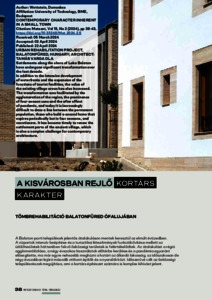 Settlements along the shore of Lake Balaton have undergone significant transformation over the last decade. In addition to the intensive development of waterfronts and the expansion of the functions of tourist facilities, the value of the existing village areas has also increased. The transformation was facilitated by the agglomeration of the region, the prominence of four-season uses and the after effect of pandemic, and today it is increasingly difficult to draw a line between the permanent population, those who build a second home that expires periodically but in four seasons, and vacationers. It has become timely to renew the settlement parts of the ancient village, which is also a complex challenge for contemporary architecture.