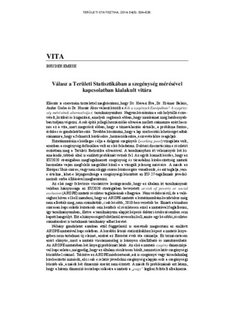Bruder, Emese (2014) Válasz a Területi Statisztikában a szegénység mérésével kapcsolatban kialakult vitára. TERÜLETI STATISZTIKA, 54 (5). pp. 524-526. ISSN 0018-7828
