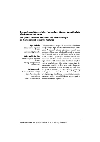 Egri, Zoltán and Kőszegi, Irén Rita (2018) A gazdasági-társadalmi (komplex) térszerkezet kelet-közép-európai képe. TERÜLETI STATISZTIKA, 58 (1). pp. 27-56. ISSN 0018-7828 ; Online: 2064-8251