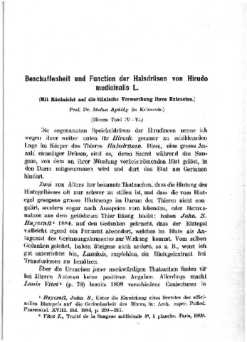 Apáthy, István (1897) Beschaffenheit und Function der Halsdrüsen von Hirudo medicinalis L. : (Mit Rücksicht auf die klinische Verwerthung ihres Extractes). Értesítő az Erdélyi Múzeum-Egylet Orvos-Természettudományi Szakosztályából. I., Orvosi szak, 19 (2-3). pp. 37-77.