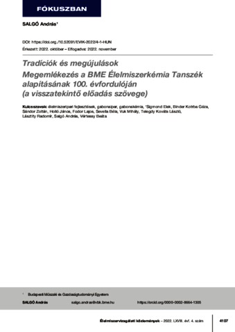 Salgó, András (2022) Tradíciók és megújulások : Megemlékezés a BME Élelmiszerkémia Tanszék alapításának 100. évfordulóján (a visszatekintő előadás szövege). ÉLELMISZERVIZSGÁLATI KÖZLEMÉNYEK, 68 (4). pp. 4107-4112. ISSN 0422-9576