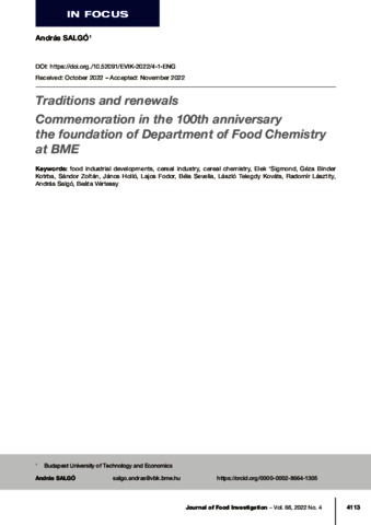 Salgó, András (2022) Traditions and renewals : Commemoration in the 100th anniversary the foundation of Department of Food Chemistry at BME. ÉLELMISZERVIZSGÁLATI KÖZLEMÉNYEK, 68 (4). pp. 4113-4118. ISSN 0422-9576