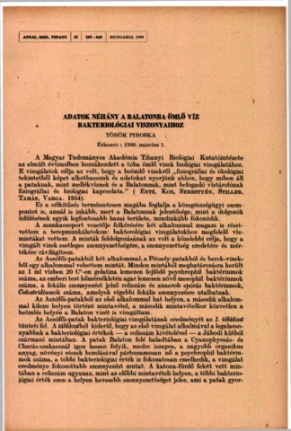 Török, Piroska (1960) Adatok néhány a Balatonba ömlő víz bakteriológiai viszonyaihoz. A Magyar Tudományos Akadémia Tihanyi Biológiai Kutatóintézetének évkönyve, 27. pp. 165-168. ISSN 0365-3005