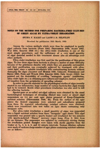 Kalkó F., Zsuzsa and Felföldy, Lajos (1959) Notes on the method for preparing bactcria-free cultures of green algae by ultra-violet irradiation. A Magyar Tudományos Akadémia Tihanyi Biológiai Kutatóintézetének évkönyve, 26. pp. 343-347. ISSN 0365-3005