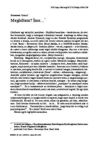 Zsigmond, Csilla (2020) Megleltem? Íme... REGIO, 28 (4). pp. 182-183. ISSN 2415959X