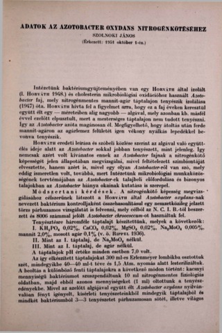 Szolnoki, János (1951) Adatok az Azotobacter oxydans nitrogénkötéséhez. A Magyar Tudományos Akadémia Tihanyi Biológiai Kutatóintézetének évkönyve, 20. pp. 245-247. ISSN 0365-3005