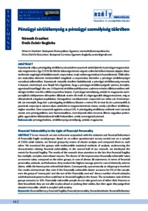 Kutatásunk célja a pénzügyileg sérülékeny társadalmi csoportok attitűdjeinek és pénzügyi magatartásának megismerése. Egy 22 933 fős felnőtt lakossági mintán végzett online kérdőíves kutatás alapján, klaszterelemzés segítségével kialakítottunk csoportokat, majd ezeket egymáshoz is hasonlítottuk. Többváltozós statisztikai elemzési módszerekkel vizsgáltuk a csoportokat, kiemelve a pénzügyi sérülékenységre vonatkozó jellemzőket. Kutatásunk második részében kialakítottuk a pénzügyi sérülékenység mutatót. A kutatás eredményei arra hívják fel a figyelmet, hogy a pénzügyi sérülékenységnek számos, komplex, egymással összefüggő oka van. A Kispénzű sérülékenyek klasztere, csaknem minden állítás esetében szélsőséges értéket vesz fel a többi csoporthoz képest. A pénzügyi személyiség, attitűd és magatartás szempontjából a kifejezetten előnytelen állítások esetén ők érték el a legmagasabb átlagpontszámot, míg az előnyöseknél a legalacsonyabbakat. Kimagaslóan veszélyeztetett csoportról van tehát szó. Eredményeink azt mutatják, hogy bár a pénzügyileg sérülékeny klaszter a minta 9%-át teszi ki, de a pénznyelők és passzívak csoportja is számos olyan attitűdöt és magatartásmintát mutat, amely a jövőben sérülékenységhez vezethet. Ezen csoportok együttes aránya 32%. A pénzügyileg sérülékeny emberek nem tartanak rendet sem pénzügyeikben, sem háztartásukban, nem képesek előre tervezni, illetve vágyaikat prolongálni, ugyanakkor kilátástalannak ítélik helyzetüket, amely szorongással párosul. | In our research, we aim to become acquainted with the attitudes and financial behaviours of financially fragile social groups. Based on an online questionnaire survey carried out on a sample of 22933 adult citizens, we formed groups by means of cluster analysis and compared them to each other. We examined the groups with multivariable statistical methods of analysis, underscoring the characteristics relating financial vulnerability. In the second half of our research, we developed the metric for financial fragility. The results of the research draw attention to the fact that financial fragility has multiple, complex, interrelated reasons. The cluster of ‘the impecunious financially vulnerable’ takes an extreme value, compared to the other groups, in case of almost all statements. In terms of financial personality, attitude, and behaviour, they reached the highest average point in case of distinctly adverse claims, while the lowest point at beneficial claims. Consequently, a paramountly at-risk group is involved. Our results demonstrate that even if the financially vulnerable cluster accounts for 9% of the sample, even the group of ‘money pits’ and the one of the ‘financially reserved’ show a number of such attitudes and behavioural patterns that could lead to financial fragility in the future. The cumulative ratio of these groups amounts to 32%. Financially vulnerable people do not take good care of either their finances or their household, they are not able to plan ahead or prolong their wishes, but then again they judge their situation incurable, which is coupled with anxiety.