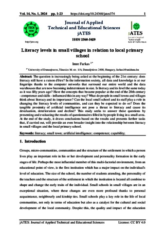 Farkas, Imre (2024) Literacy levels in small villages in relation to local primary school. JOURNAL OF APPLIED TECHNICAL AND EDUCATIONAL SCIENCES, 14 (1). pp. 1-23. ISSN 2560-5429