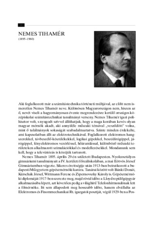 Könyvrészlet Nemes Tihamér életútjáról, a magyar számítástechnika történetének kiemelkedő személyiségéről, A magyar feltalálók a távközlés történetében című könyvből. Forrás: Országos Széchényi Könyvtár (OSZK) Magyar Elektronikus Könyvtár (MEK).