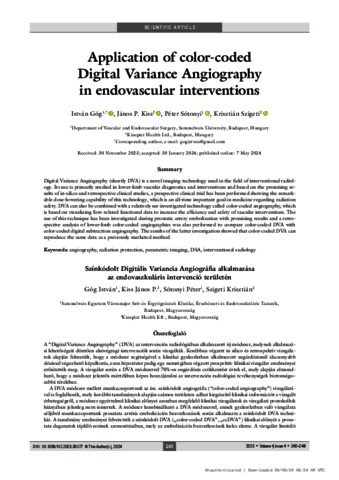 Góg, István and Kiss, Péter János and Sótonyi, Péter and Szigeti, Krisztián (2024) Application of color-coded Digital Variance Angiography in endovascular interventions. SCIENTIA ET SECURITAS, 4 (4). pp. 240-248. ISSN 2732-2688