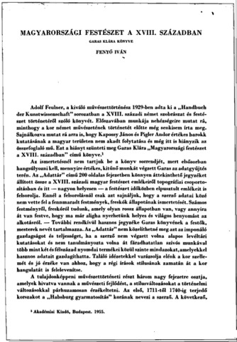 Fenyő, Iván (1956) Magyarországi festészet a XVIII. században - Garas Klára könyve. A MAGYAR TUDOMÁNYOS AKADÉMIA TÁRSADALMI-TÖRTÉNETI TUDOMÁNYOK OSZTÁLYÁNAK KÖZLEMÉNYEI, 8 (2). pp. 137-140.