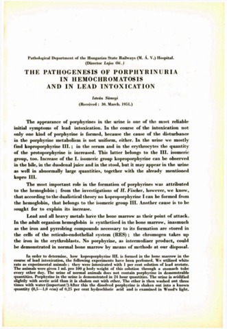 Sümegi, István (1951) The Pathogenesis of Porphyrinuria in Hemochromatosis and in Lead Intoxication. ACTA MORPHOLOGICA - A MAGYAR TUDOMÁNYOS AKADÉMIA ORVOSTUDOMÁNYI KÖZLEMÉNYEI, 1 (4). pp. 459-465.
