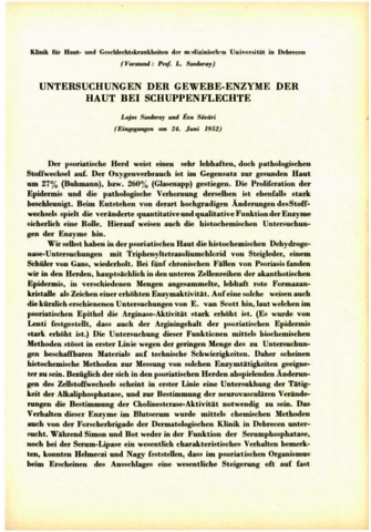 Szodoray, Lajos and Sóvári, Éva (1953) Untersuchungen Der Gewebe-Enzyme Der Haut Bei Schuppenflechte. ACTA MORPHOLOGICA - A MAGYAR TUDOMÁNYOS AKADÉMIA ORVOSTUDOMÁNYI KÖZLEMÉNYEI, 3 (1). pp. 111-119.