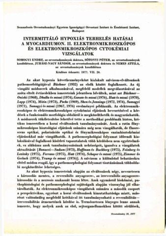 Somogyi, Endre and Sótonyi, Péter and Juhász Nagy, Sándor and Nemes, Attila (1977) Intermittáló hypoxiás terhelés hatásai a myocardiumon. II. Elektronmikroszkópos és elektronmikroszkópos cytokémiai vizsgálatok. A MAGYAR TUDOMÁNYOS AKADÉMIA V. ORVOSI TUDOMÁNYOK OSZTÁLYÁNAK KÖZLEMÉNYEI, 28 (3-4). pp. 327-338.