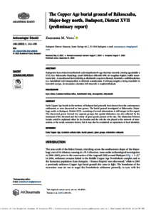 Budapesten kora rézkori temetkezések csak településekről vagy elszórtan ismertek. Jelenleg egyedülálló a XVII. ker. Rákoscsaba-Majorhegy, észak lelőhelyen előkerült több sírt magában foglaló, önálló temetkezési hely. A temetkezések két területileg is elkülönülő csoportot alkotnak, közöttük a mellékletadásban és a halottakkal való bánásmódban is eltérések mutatkoznak. E jelenség mögött a térség összekötő és közvetítő szerepe, de társadalmi, identitás béli tényezők is meghúzódhatnak. | Budapesten kora rézkori temetkezések csak településekről vagy elszórtan ismertek. Jelenleg egyedülálló a XVII. ker. Rákoscsaba-Majorhegy, észak lelőhelyen előkerült több sírt magában foglaló, önálló temetkezési hely. A temetkezések két területileg is elkülönülő csoportot alkotnak, közöttük a mellékletadásban és a halottakkal való bánásmódban is eltérések mutatkoznak. E jelenség mögött a térség összekötő és közvetítő szerepe, de társadalmi, identitás béli tényezők is meghúzódhatnak.