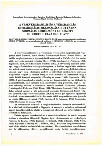 Rosivall, László and Fazekas, Árpád and Pósch, Elek and Szabó, György and Hársing, László (1976) A vesevéráramlás és a véráramlás intrarenalis megoszlása kutyában normális körülmények között és uréter elzárás alatt. A MAGYAR TUDOMÁNYOS AKADÉMIA V. ORVOSI TUDOMÁNYOK OSZTÁLYÁNAK KÖZLEMÉNYEI, 27 (3-4). pp. 173-183.