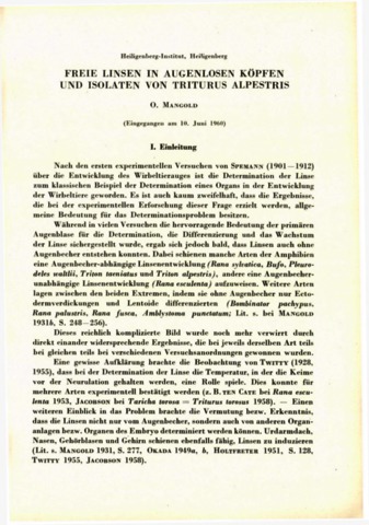 Mangold, O. (1961) Freie Linsen in Augenlosen Köpfen Und Isolaten Von Triturus Alpestris. ACTA MORPHOLOGICA - A MAGYAR TUDOMÁNYOS AKADÉMIA ORVOSTUDOMÁNYI KÖZLEMÉNYEI, 10 (2-4). pp. 153-176.