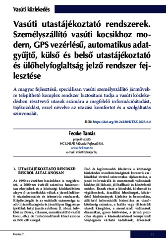 Fecske, Tamás (2023) Vasúti utastájékoztató rendszerek : Személyszállító vasúti kocsikhoz modern, GPS vezérlésű, automatikus adatgyűjtő, külső és belső utastájékoztató és ülőhelyfoglaltság jelző rendszer fejlesztése = Information system's for railway passangers : Development of a modern, GPS-controlled, automatic data acquisition system with external and internal passanger information and seat occupancy display system for passanger rail wehicles. KÖZLEKEDÉSTUDOMÁNYI SZEMLE, 73 (6). pp. 35-41. ISSN 0023-4362